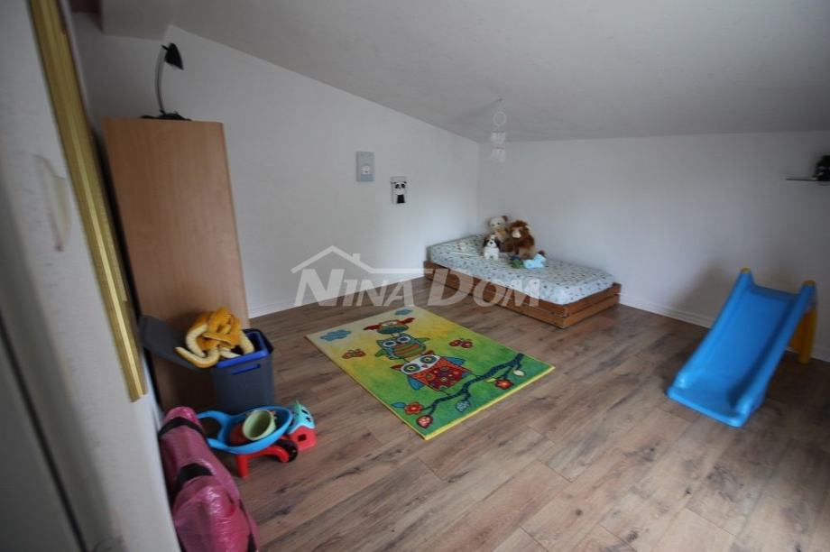 Na katu tri spavaće sobe, velika terasa, balkon, kupaona, unutarnje stepenice na drugi kat
