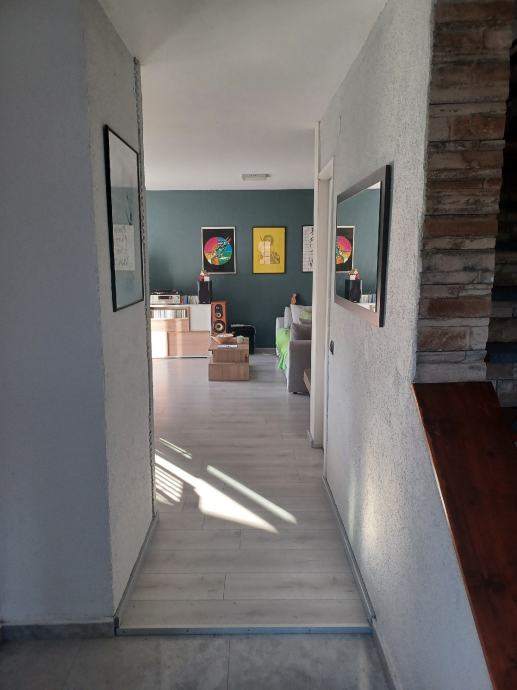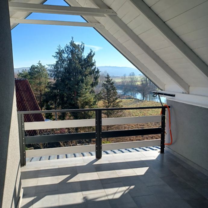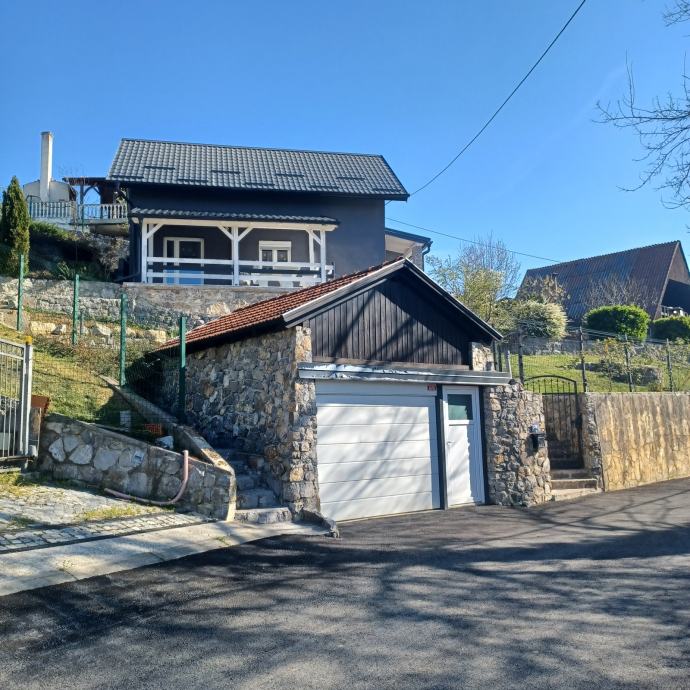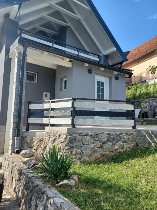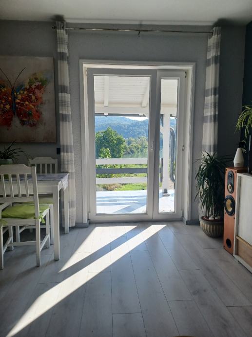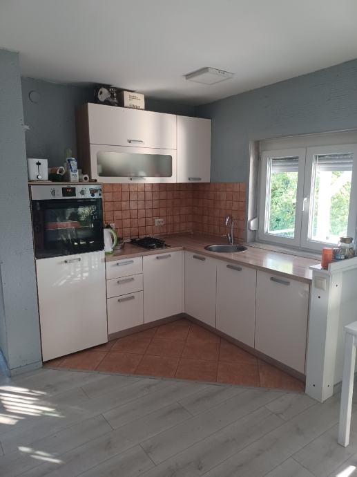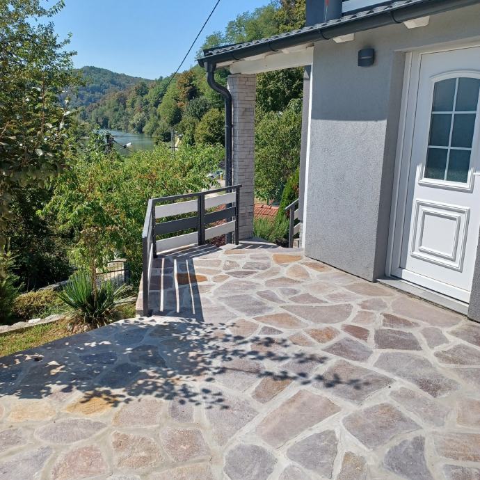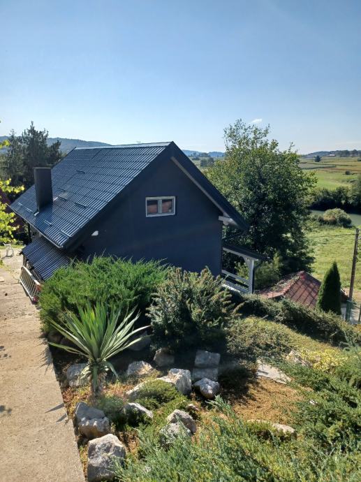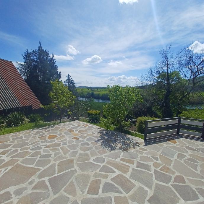 Prodaje se ili zamjena za app na moru. Svega 30 do 40 min od Zagreba (8 km od Karlovca)vikend kuća(može bez problema za stanovanje) 79 m2 i garaža 20m2(vrata na daljinsko otvaranje),kraj rijeke Korane. Kuća ima novi krov I krovište sa vanjskom izolacijom,stiropor fasadu,novi namještaj,struja,voda,led rasvjeta u cijeloj kući. Režije su cca 45 do 50 eura mjesečno,ako stalno boravite u kući. Prizemlje se sastoji od predulaza,kupatila sa wc-om,kuhinje sa blagovaonom I dnevnog boravka,iz kojeg se izlazi na veliku natkrivenu terasu,sa koje se pruža lijep pogled na rijeku. Iz predulaza,unutarnjim stepenicama,ide se u visoko potkrovlje,gdje je velika soba i velika lođa sa koje se također pruža lijep pogled na rijeku. Kraj ulaza u kuću je još jedna velika nenatkrivena terasa. Kuća se nalazi na 580 m2 okućnice, koja je kompletno uređena i ograđena. Asfalt do kuće. Papiri su uredni i čisti,bez ikakvog tereta, vlasništvo 1/1. Građevinska i uporabne dozvola ( rješenje o izvedenom stanju). Energetski certifikat je B. Informacije na telefon 099/8324466 Nekretninu prodaje vlasnik.