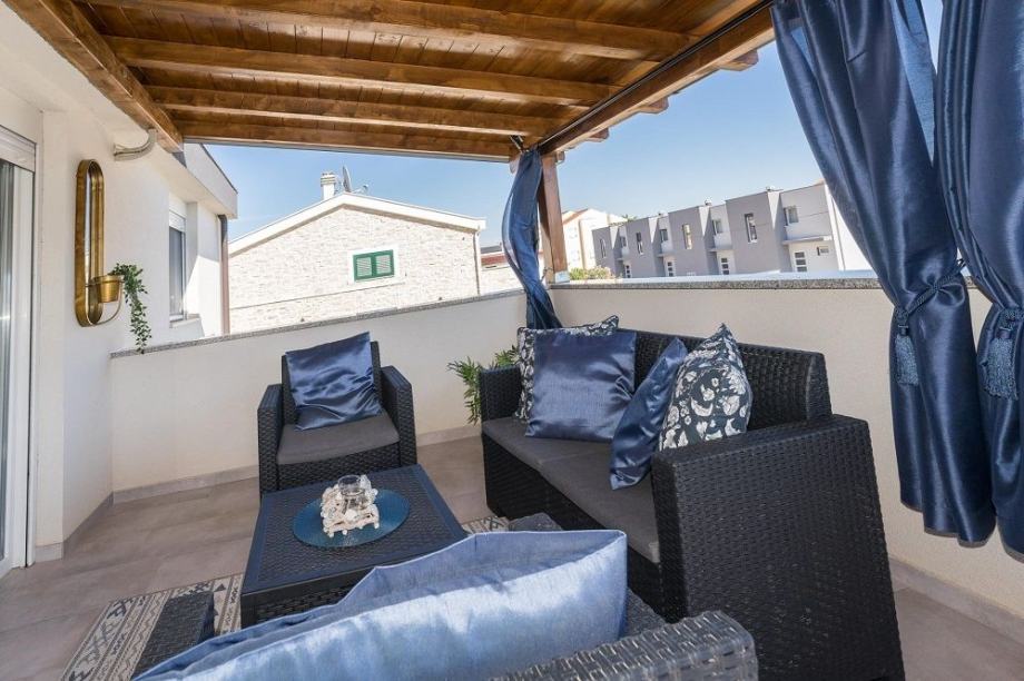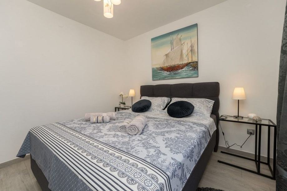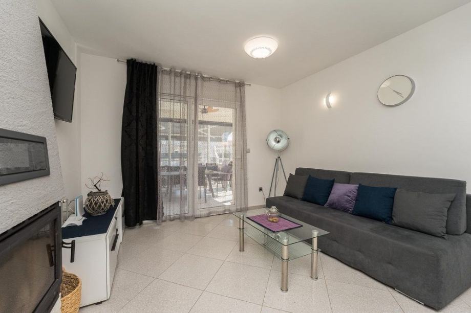 Smještena je u mirnom dijelu naselja udaljena od mora i plaže svega 250 metara kao i od svih potrebnih sadržaja restorana, kafića itd.