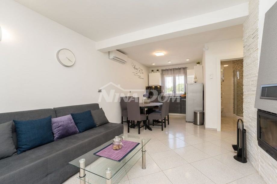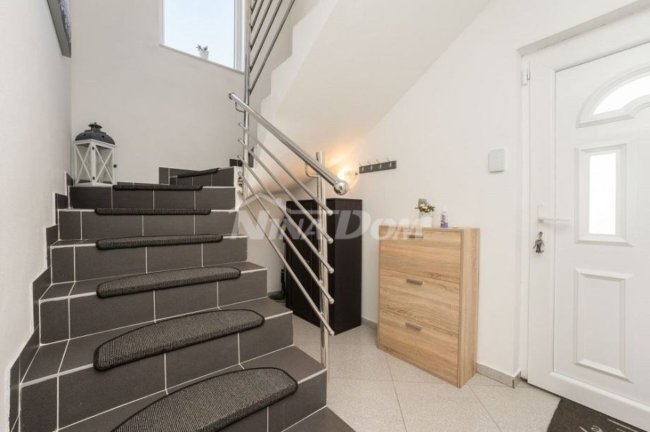 Prizemlje: hodnik, kuhinja s dnevnim boravkom, jedna spavaća soba, kupaona, zatvorena uređena terasa, unutarnje stepenice za kat, na katu se nalaze dvije spavaće sobe, dnevni boravak, kupaona i natkrivena terasa.