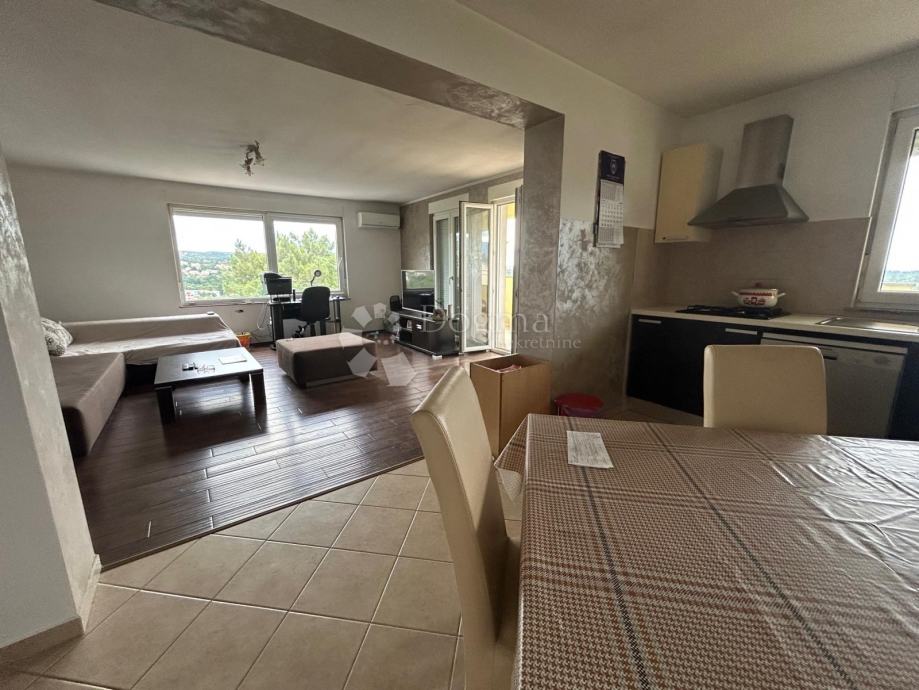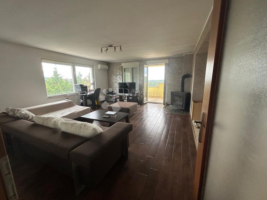 Na prvom katu nalazi se potpuno uređen i namješten trosoban stan. Stan ima iznimno prostran dnevni dio sa kuhinjom i blagovaonicom površine čak 48 m², zatim ostavu, posebno kupaonicu i WC, te izlaz na natkrivenu terasu površine otprilike 20 m². Ovaj stan je odmah useljiv, vrlo svijetao i ugodan za svakodnevni život.