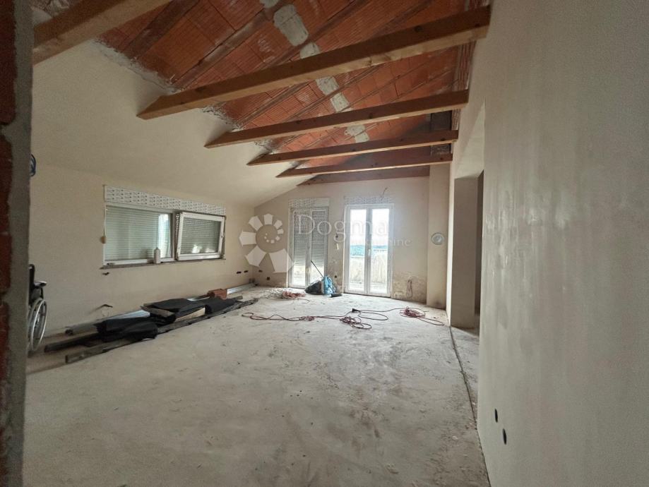 Na drugom katu nalazi se još jedan trosoban stan istog rasporeda, trenutno u roh-bau fazi. Već su provedene instalacije, a novi vlasnik ima mogućnost uređenja po vlastitim željama – kao dodatni stambeni prostor, apartman za najam ili produžetak postojeće stambene jedinice. Stanovi su povezani unutarnjim stubištem, što omogućuje fleksibilnu upotrebu prostora – kao dvije odvojene stambene cjeline ili kao jedna velika obiteljska kuća.