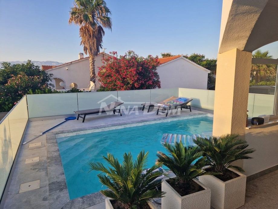 Lijepo uređena nekretnina koja je udaljena svega 45 metara do mora, kompletno renovirana 2023 godine, nalazi se na zemljištu od 1188 m2.