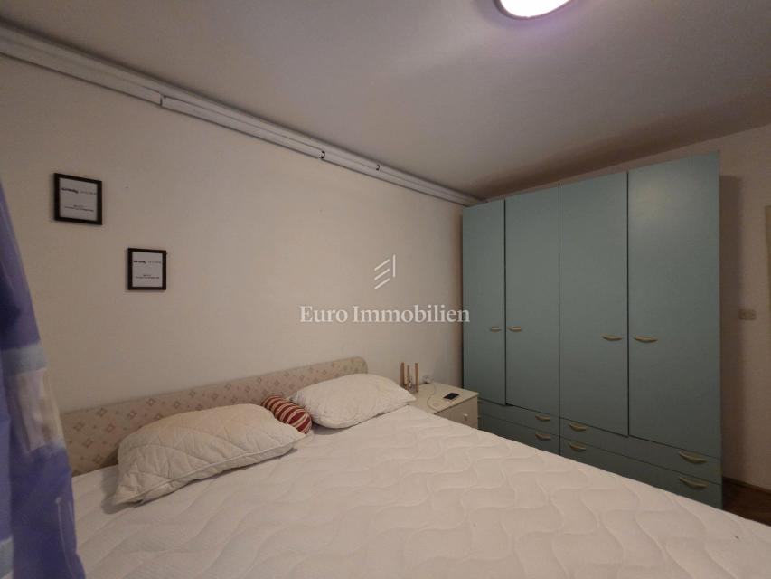 Okućnica nudi dodatnu natkrivenu terasu s roštiljem za druženja na otvorenom, kotlovnicu i bogato zelenilo koje stvara intiman i ugodan ambijent. Nekretnina je u potpunosti namještena i klimatizirana, te je odmah spremna za useljenje.