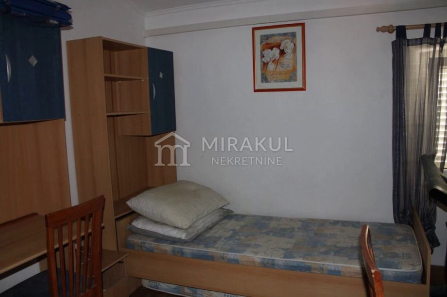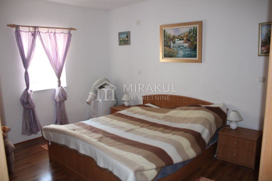 Sastoji se od: hodnika, dnevnog boravka, blagovaonice i kuhinje, spavaće sobe 1, spavaće sobe 2, kupaonice, hodnika, stepeništa za izlaz na terasu na krovu.