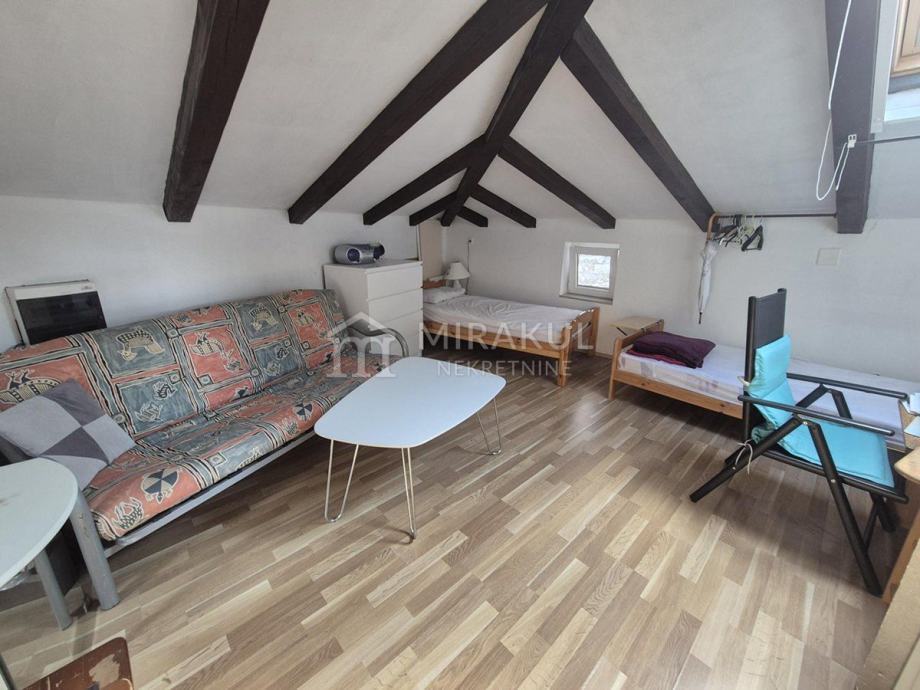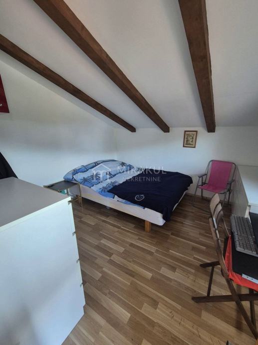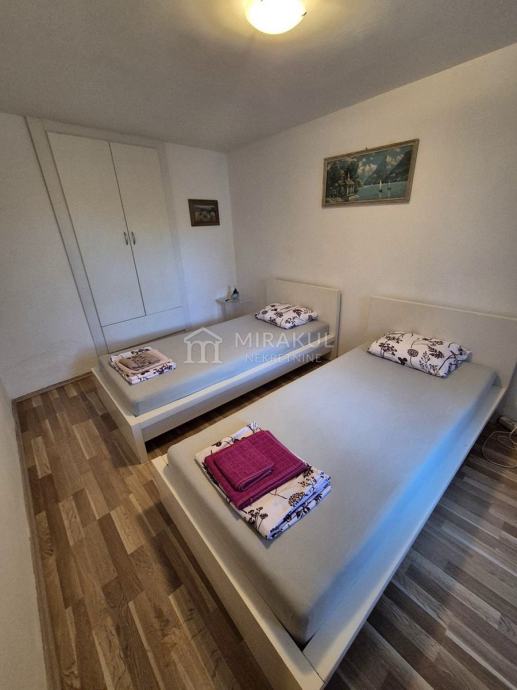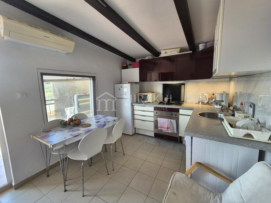 Potkrovlje – Dvije spavaće sobe, potpuno opremljena kuhinja sa perilicom, kupaonica s perilicom rublja i velika terasa s pogledom na more i Kornate.