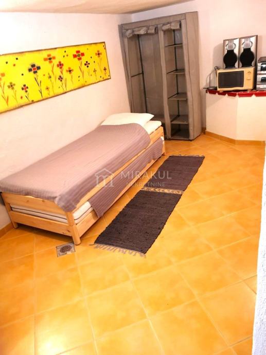 Kuća od 80,57 m2 sastoji se od kuhinje i dnevnog boravka, velike sobe, kupaone te galerije na katu, u sklopu kuće se nalazi i konoba gdje je po ljeti jako ugodno i klima nije potrebna.