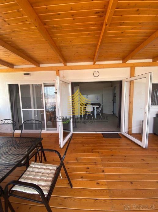 Prostor je pažljivo osmišljen kako bi pružio funkcionalnost i udobnost. Otvoreni dnevni boravak nudi dovoljno prostora za opuštanje, dok prirodna svjetlost dodatno naglašava prozračnost interijera. Iz dnevne zone izlazi se na balkon s kojeg se pruža pogled na more, čime se stvara poseban ugođaj boravka u blizini obale. Udobnost dodatno povećava klima uređaj, omogućujući ugodnu temperaturu tijekom cijele godine.