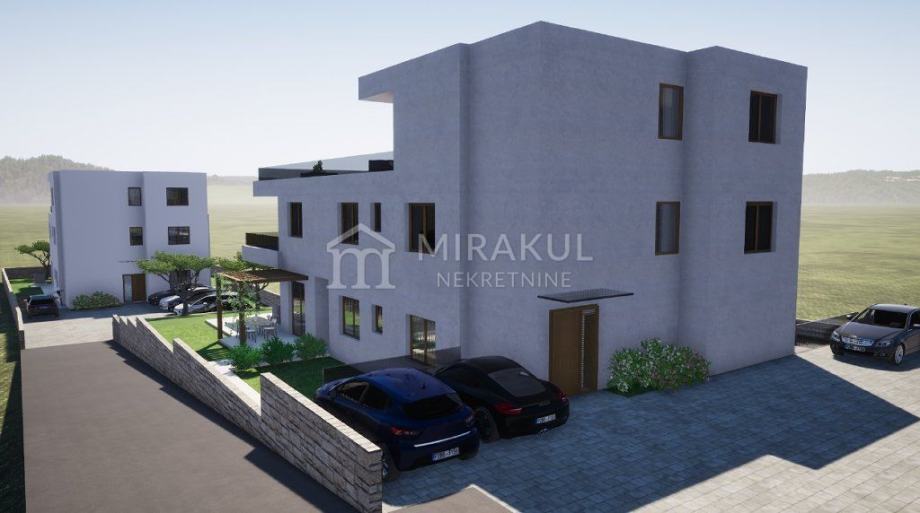 Sastoji se od od hodnika, kupaonice, dvije spavaće sobe, kuhinje s blagovaonicom, dnevnog boravka s izlazom na natkrivenu terasu površine 15,17m2 koja ima izlaz na prostrano dvorište površine 108 m2.