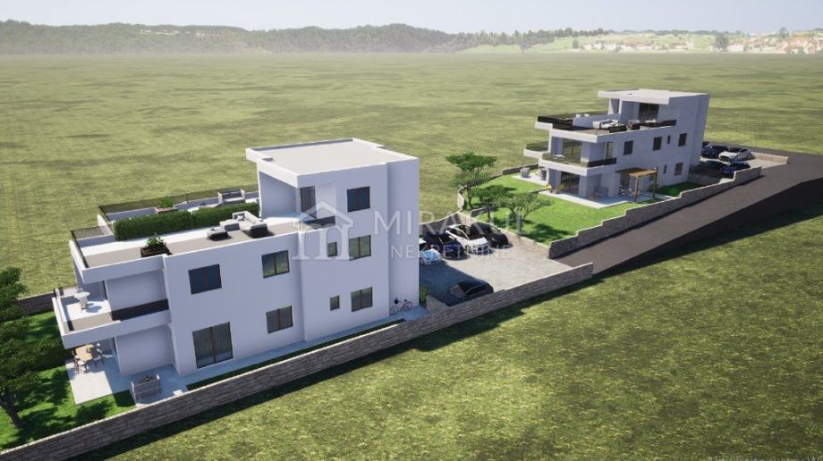 Objekt se gradi kvalitetnim materijalima prema posljednjim standardima gradnje i biti će opremljen: stiropor fasada, protuprovalna vrata, PVC stolarija antracit boje, električni podizači roleta s komarnicima, klima uređaji u dnevnom boravku i spavaćim sobama, visokokvalitetna keramika u svim prostorijama, moderne kupaonske sanitarije, električno podno grijanje u dnevnom boravku i kupaonici.