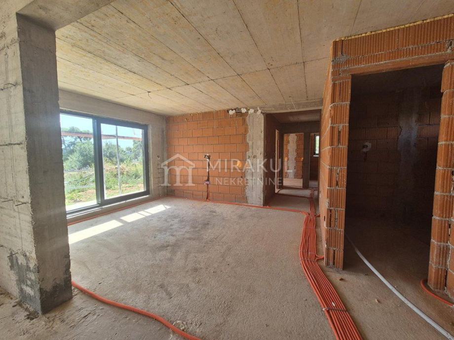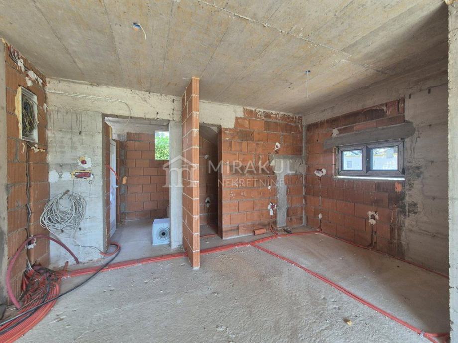 Sastoji se od: ulaza, hodnika, kuhinje, blagovaonice, spremišta, dnevnog boravka, hodnika, wc, kupaonice, tri spavaće sobe, polunatkrivene terase.