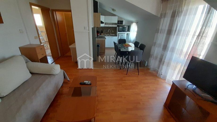 Na katu se nalazi stan sa 3 spavaće sobe, kuhinja i dnevni boravak, natkrivena i nenatkrivena terasa.