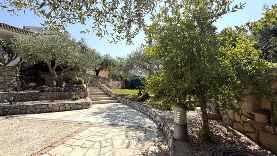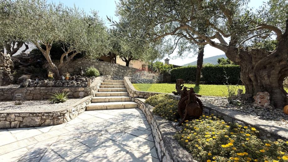 Na prostranoj parceli nalazi se parkiralište za 8–10 vozila, uređen vrt s 20 odraslih stabala maslina, a lokacija i konfiguracija terena omogućuju dodatnu izgradnju – bilo novog objekta, bilo bazena.