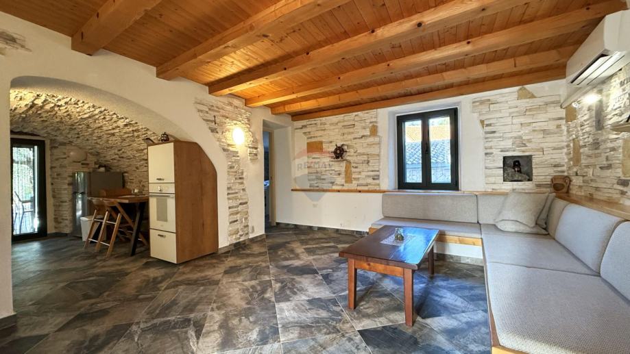 Na izuzetno mirnoj lokaciji u samom srcu Nerezina, svega 150 metara od glavnog trga i 300 metara od plaže, prodaje se autentična kamena vila s velikom okućnicom, obnovljena 2024. godine i spremna za korištenje bez dodatnih ulaganja.
