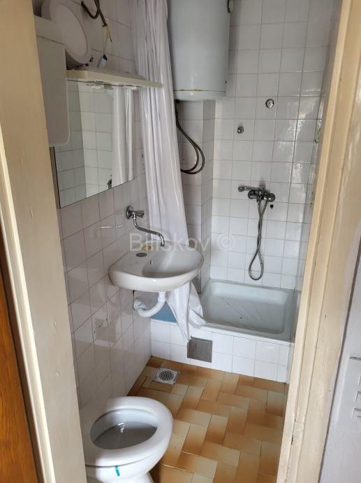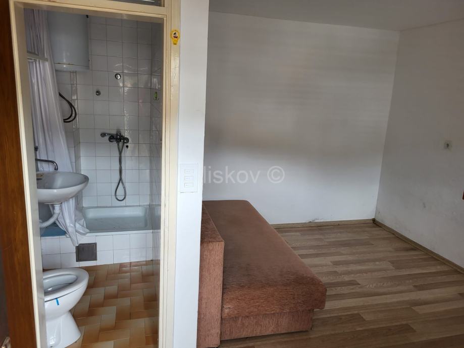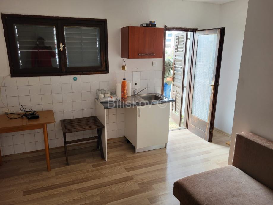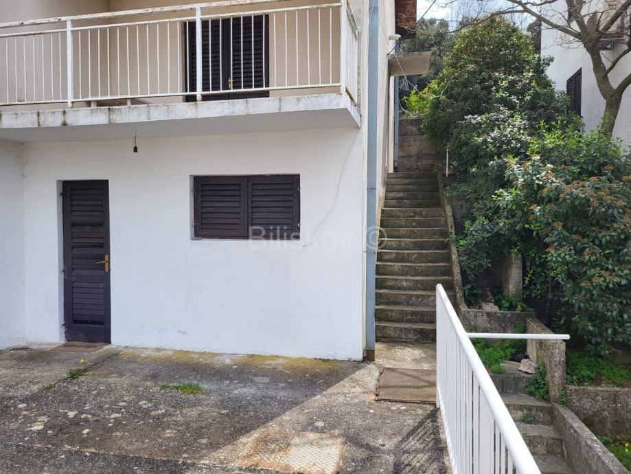 U suterenu (zbog konfiguracije terena, u naravi prizemlje) se nalazi garsonjera površine 25m2 ispred koje je terasa s pogledom na more i uvalu.
