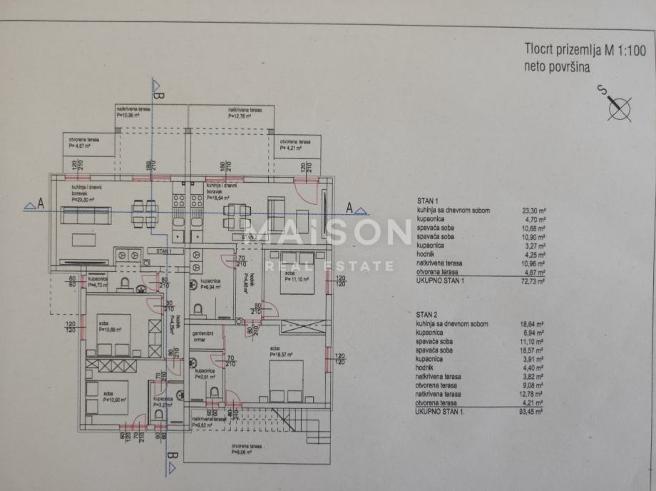 * Svaki apartman sadrži: kuhinju s blagovaonom i dnevnim boravkom, dvije spavaće sobe (jedna s vlastitom kupaonom), dodatnu kupaonicu, hodnik i natkrivenu terasu