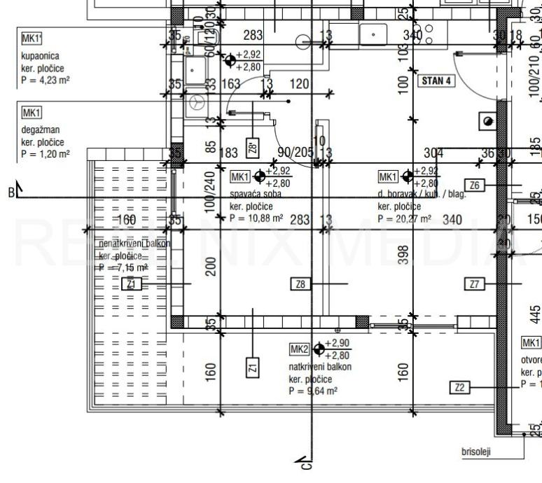 Projekt novogradnje na odličnoj lokaciji udaljenoj svega 100 metara od mora, sastoji se od 10 komfornih stambenih jedinica raspoređenih na 3 nadzemne etaže, te terasama na krovu zgrade. Zgrada se oprema vrhunskim materijalima, podnim grijanjem u kupaonici i dizalom. Raspored stanova i prostorija, omogućuje svim stanarima maksimalnu privatnost. Projekt odlikuje izuzetno kvalitetna novogradnja: PVC stolarija sa elektro roletama i komarnicima, klima uređaji u svim prostorijama, podno grijanje u kupaonicama, visoko kvalitetne keramičke pločice i sanitarije, protuprovalna i protupožarna ulazna vrata..Stan oznake S4 nalazi se na prvom katu zgrade te se sastoji od kuhinje, blagovaonice i dnevnog boravaka, dvije natkrivene terase, predsoblja, kupaonice te jedne spavaće sobe. Stanu pripada jedno vanjsko parkirno mjesto.Predviđeni rok završetka: ljeto, 2025. godine. KUPAC NE PLAĆA POREZ NA PROMET NEKRETNINAMA!