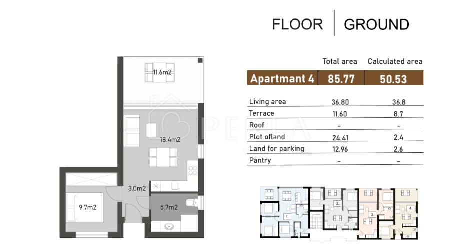 Stan No4 - 50,53 m2, jednosoban stan u prizemlju - 181.908,00 €