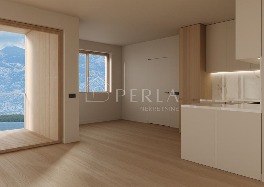 Sastoji se od ulaznog hodnika, jedne spavaće sobe, kupaonice te open space prostora kojeg čine kuhinja, blagavaonica te dnevni boravak iz kojeg se izlazi na terasu.