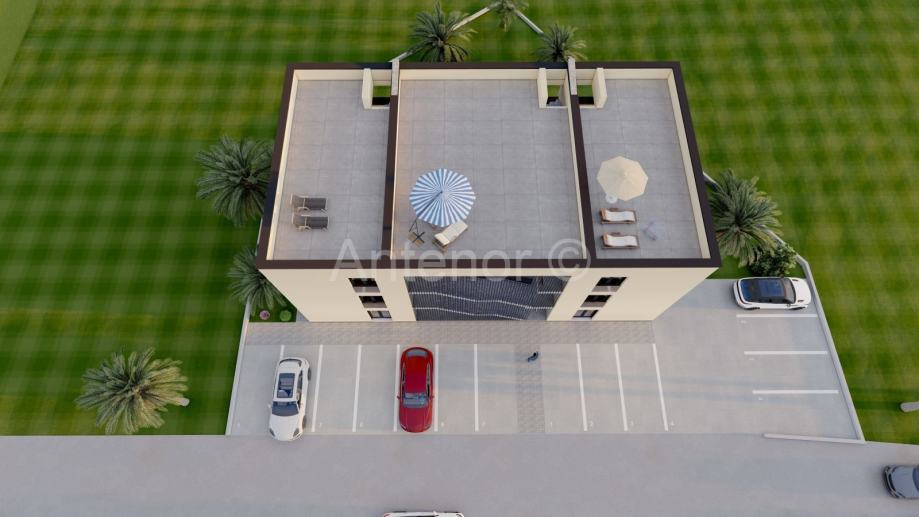 Apartman S7 tlocrtne površine je 60,43m2 i nalazi se na drugom katu. Sastoji se od hodnika, kuhinje s dnevnim boravkom, kupaonice, dvije spavaće sobe, dva parkirna mjesta (P8 i P9), krovne terase površine 16,44m2, te natkivene i nenatkrivene terase. Cijena apartmana S7 je 269.045,00 e.