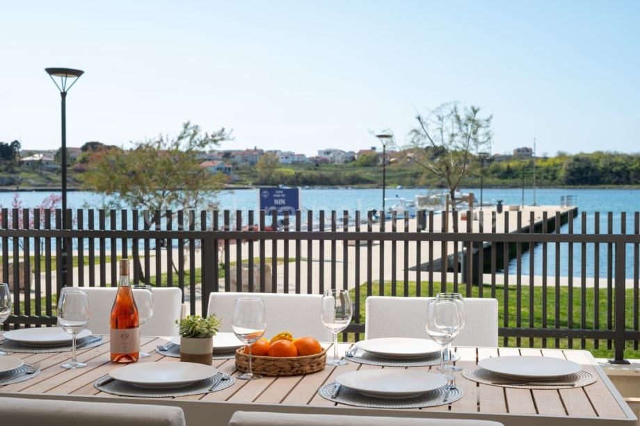 Prodaje se lijepo uređena i kompletno opremljena kuća za odmor (167,40 m2) s bazenom u prvom redu do mora u samom centru starog grada Nina. Kuća je sagrađena na terenu veličine 214 m2.
