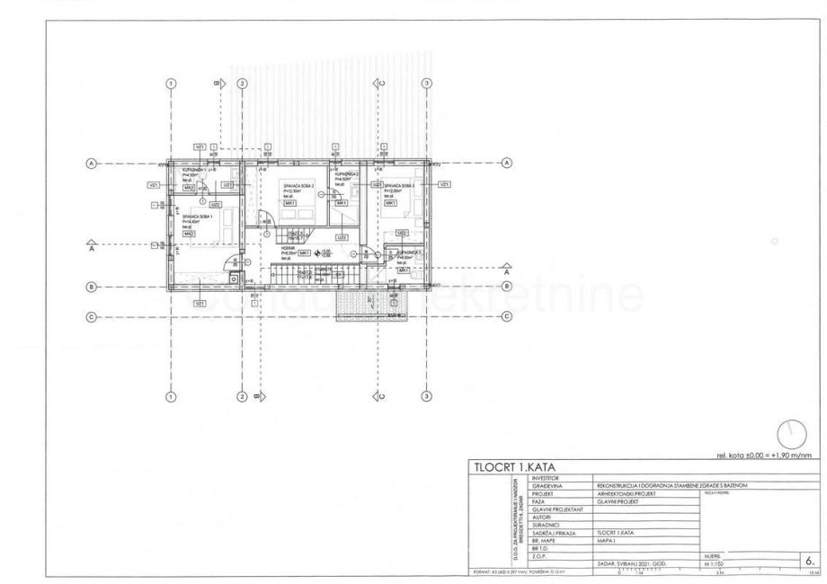 Na 1. katu se nalaze: stubište, hodnik i tri spavaće sobe, svaka s pripadajućom kupaonicom.
