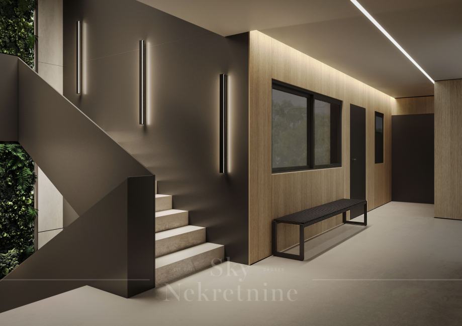 Posebna pažnja posvećena je detaljima poput aluminijske stolarije s troslojnim staklom, vanjskih roleta na električni pogon te modernog sustava grijanja i hlađenja putem klima uređaja s funkcijom toplinske pumpe.