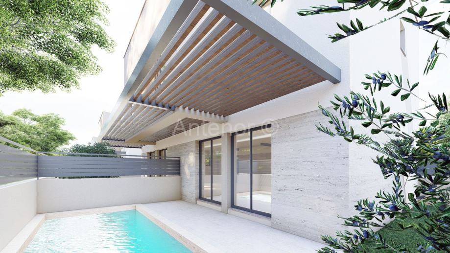 NIN - prodaje se dvojna kuća sa bazenom. Radi se o modernoj novogradnji rezidencije od osam stambenih jedinica na zemljištu površine 1285 m2.