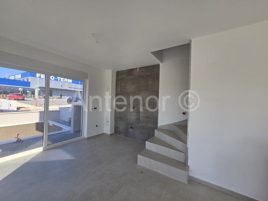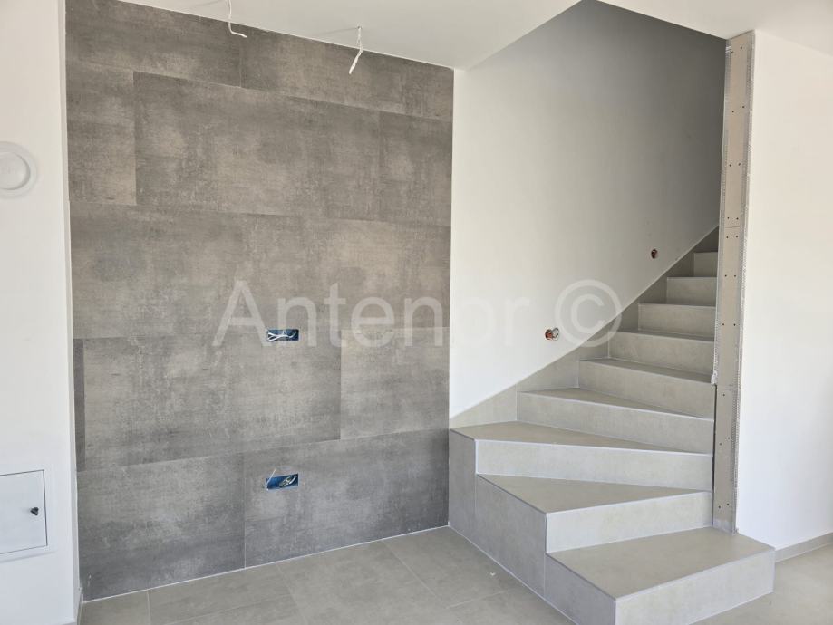 Kuća se sastoji od prizemlja i kata. U prizemlju se nalazi trijem, hodnik, wc, kuhinja, dnevni dio i spremište. Iz dnevnog boravka i blagavaone izlazi na uređeno dvorište gdje se nalazi bazen od 18 m2.