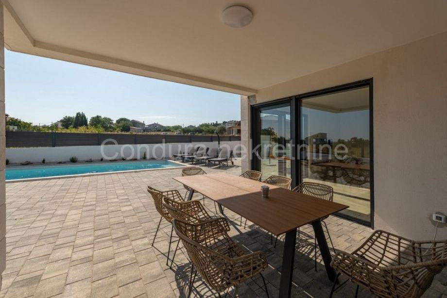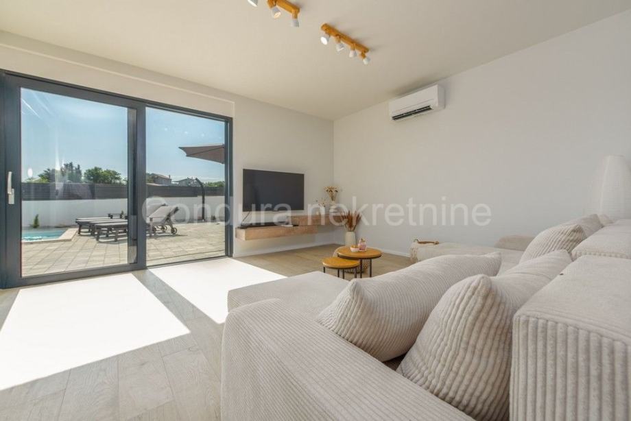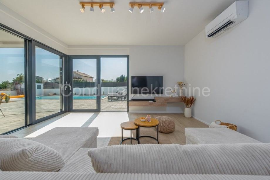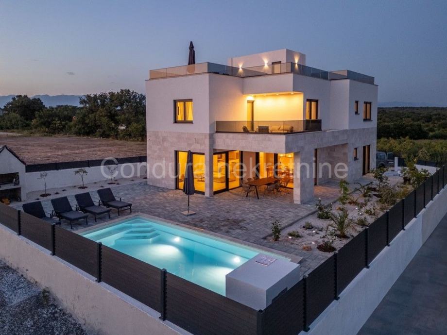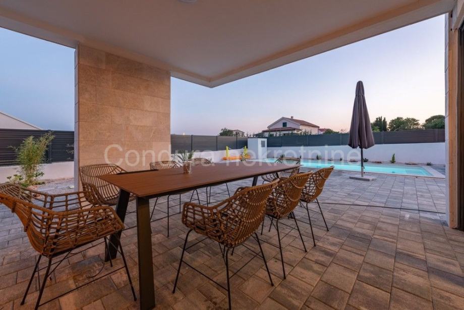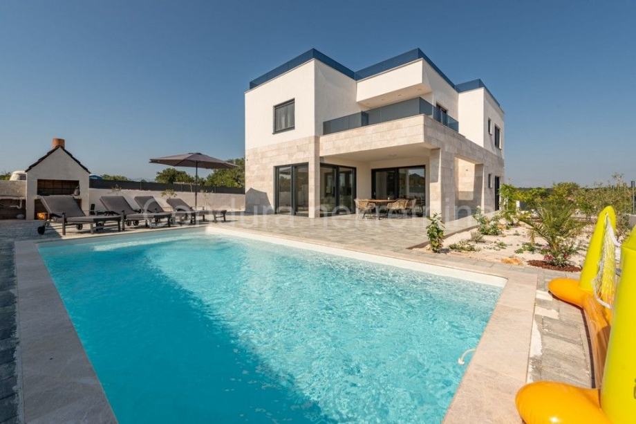 U cijelosti namještena luksuzna vila s bazenom, svega 10 min vožnje do grada Nina i plaže. Mirna lokacija, osigurana privatnost.
