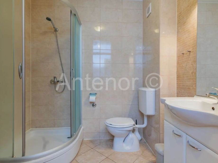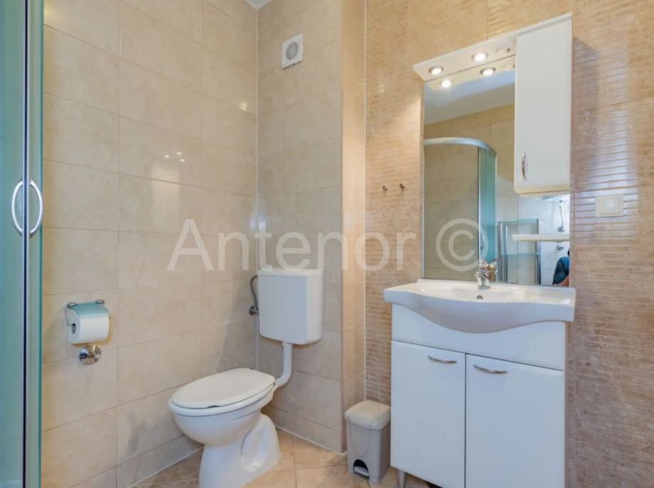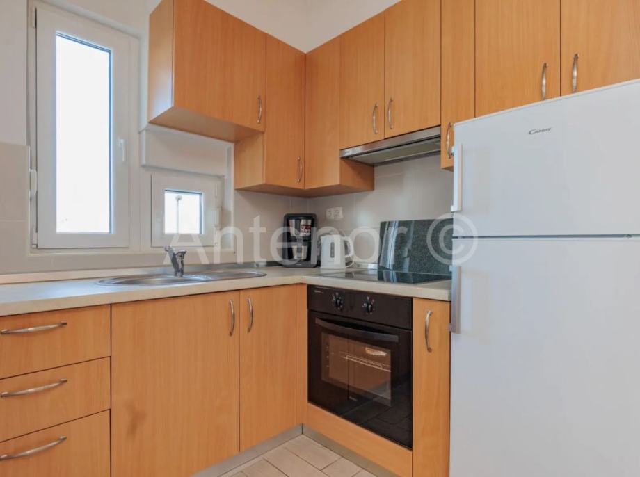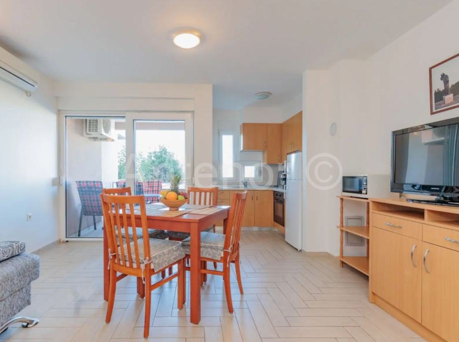 NIN - jednosoban apartman u prizemlju stambene zgrade. Apartman se sastoji od kuhinje, dnevnog boravka, blagavaone, terase, kupaonice i spavaće sobe. Ukupna tlocrtna površina stamenog prostora je 43,76 m2. Apartmanu također pripada jedno parkirno mjesto. Vlasništvo uredno 1/1.