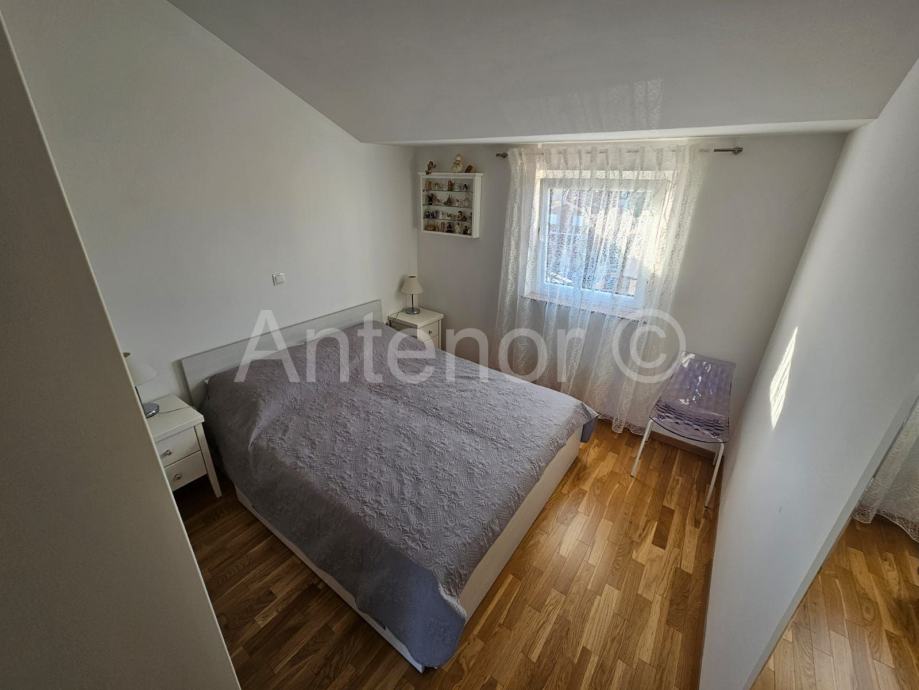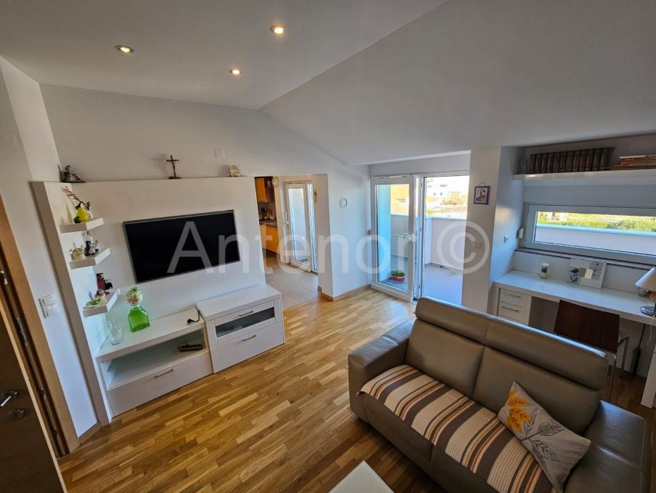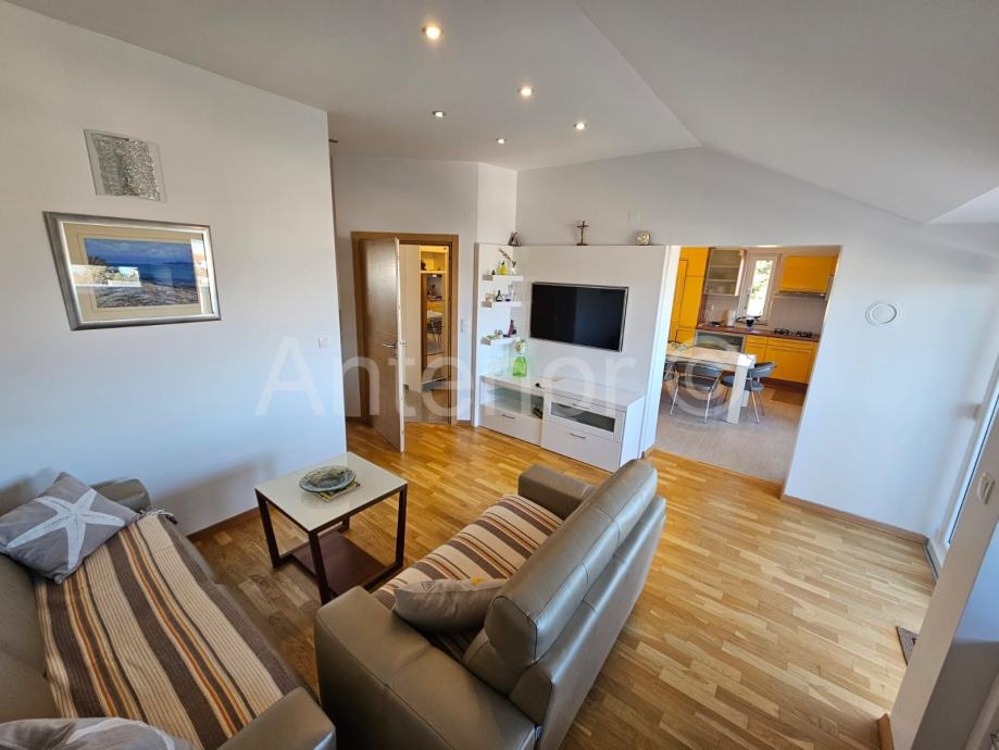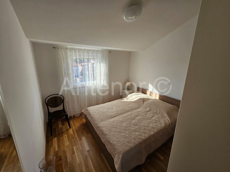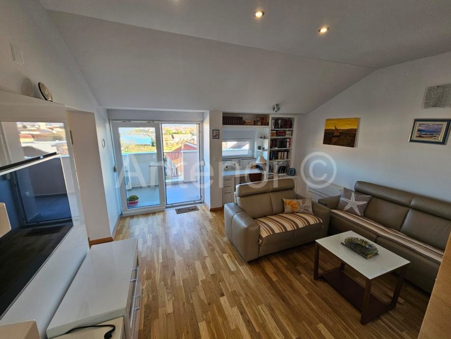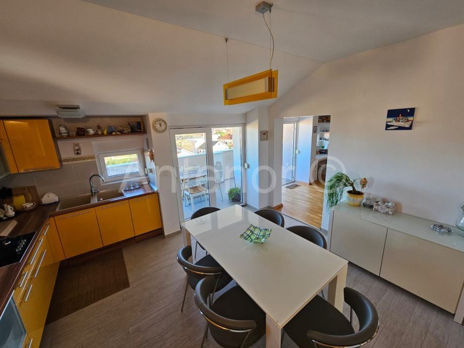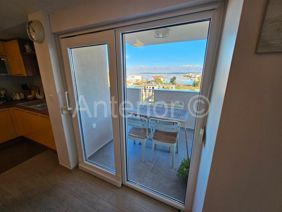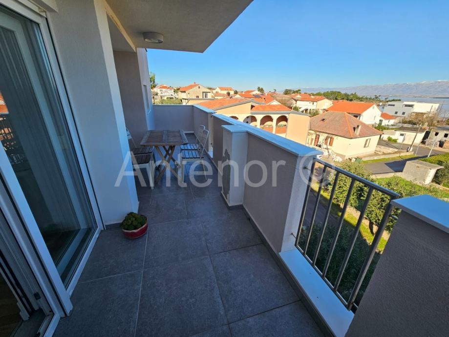 Prodaje se dvosoban stan na 2. katu manje stambene zgrade. Stan se sastoji od ulazanog prostora, kuhinje sa blagavaonom, dnevnog boravka, dvije spavaće sobe, dvije kupaonice i terase. Ukupna tlocrtna površina stana je 76,26 m2. Iz stana se pruža prekrasan pogled na centar Nina, more i Velebit. U blizini su svi sadržaji kao što je trgovina, centar, restoran... Stanu pripadaju i dva parkirna mjesta. Vlasništvo uredno 1/1.