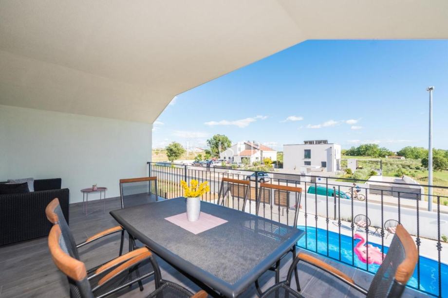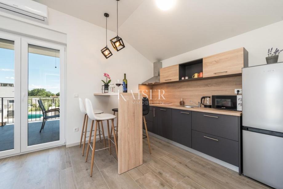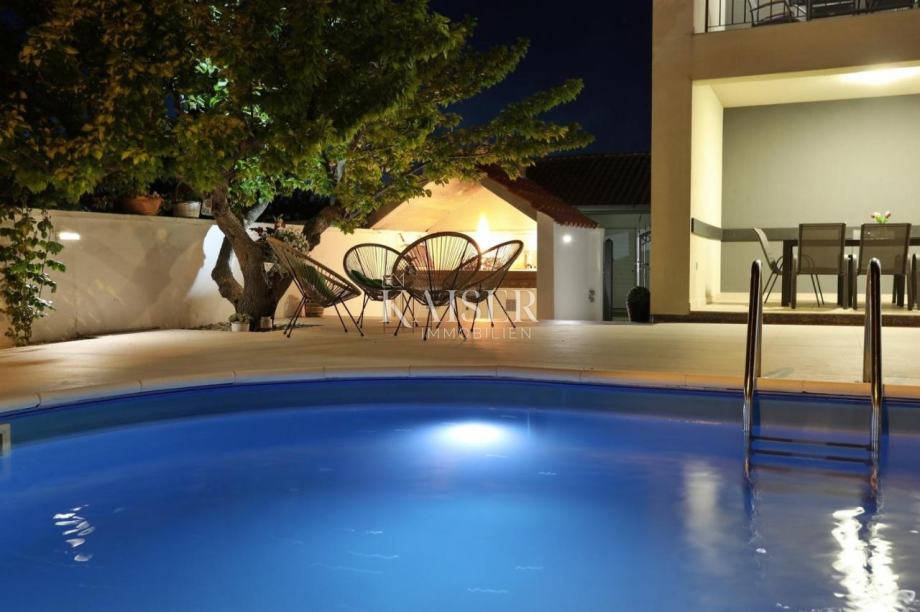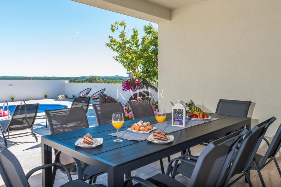 Kaiser Immobilien predstavlja vam ovu modernu vilu koja se nalazi u srcu mirnog naselja Poljica Brig, samo nekoliko kilometara od povijesnog Zadra , kao i nekoliko minuta od kraljevskog grada Nina i predivnih plaža. Grad Nin nekoć je u povijesti bio poznat i kao kraljevski grad, a u Ninu se nalazi i 8 km duga pješčana plaža, te lokalitet s ljekovitim blatom. U blizini je dostupno mnoštvo zanimljivog sadržaja poput brojnih Nacionalnih parkova i Parkova prirode, kao i prekrasnih otoka zadarskog akvatorija. Najbliže urbano središte, grad Zadar udaljeno je 10 km, a najbliža zračna luka Zemunik pokraj Zadra udaljena je 18 km. Projektirana s naglaskom na eleganciju i funkcionalnost, ova nekretnina predstavlja kombinaciju luksuza i praktičnosti, nudeći idealan prostor za život, odmor ili investiciju u turistički najam s obzirom da već ima uhodano turističko poslovanje.