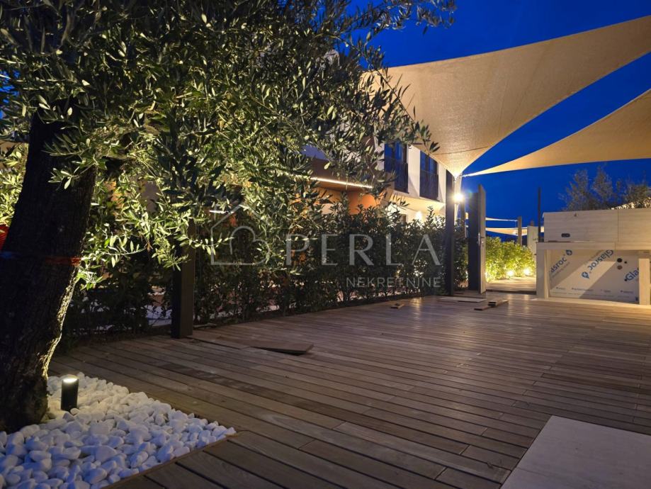 Svaki stan ima i svoje dvorište površine cca 70-100 m2 sa ljetnom kuhinjom i vanjskim grijanim bazenom za uživanje tijekom cijele godine.
