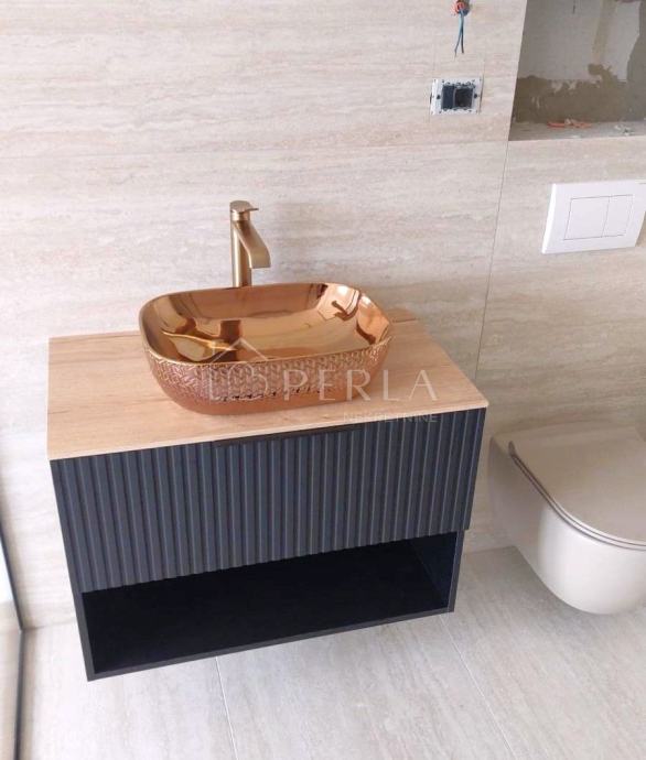 - Ugrađena kuhinja po mjeri sa svim aparatima (hladnjak, štednjak, pećnica, perilica posuđa, perilica rublja)