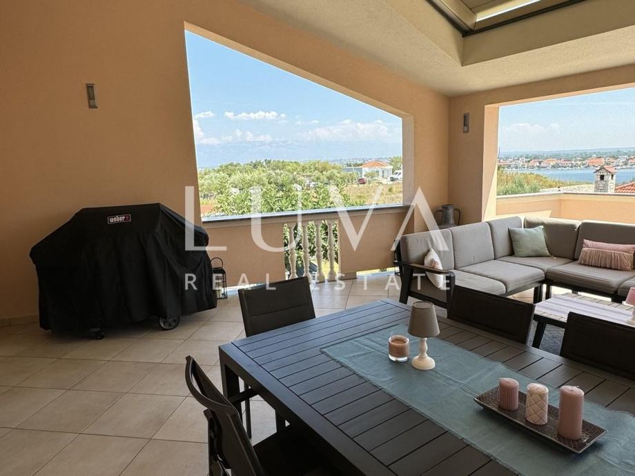 Kuća 2 površine 137,64m2 sastoji se od garaže za dva vozila sa spremištem za motocikle, jetski i slično, kotlovnice, te kupaonice u prizemlju, a na katu se nalazi konoba sa kuhinjom i blagovaonicom i terasa sa električnom pregolom.