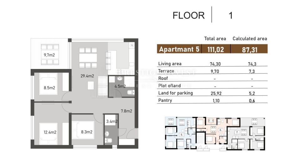 Površina zemljišta za parkiranje iznosi 25,92 m² (obračunski 5,2 m²).