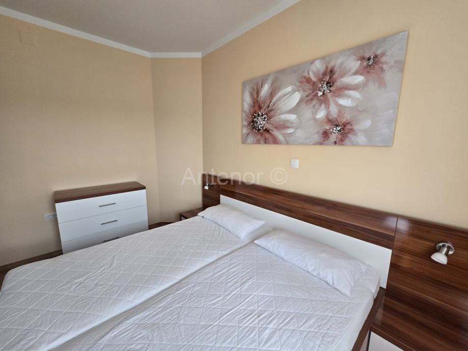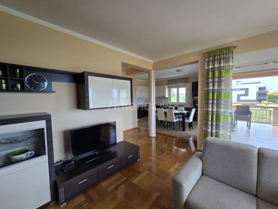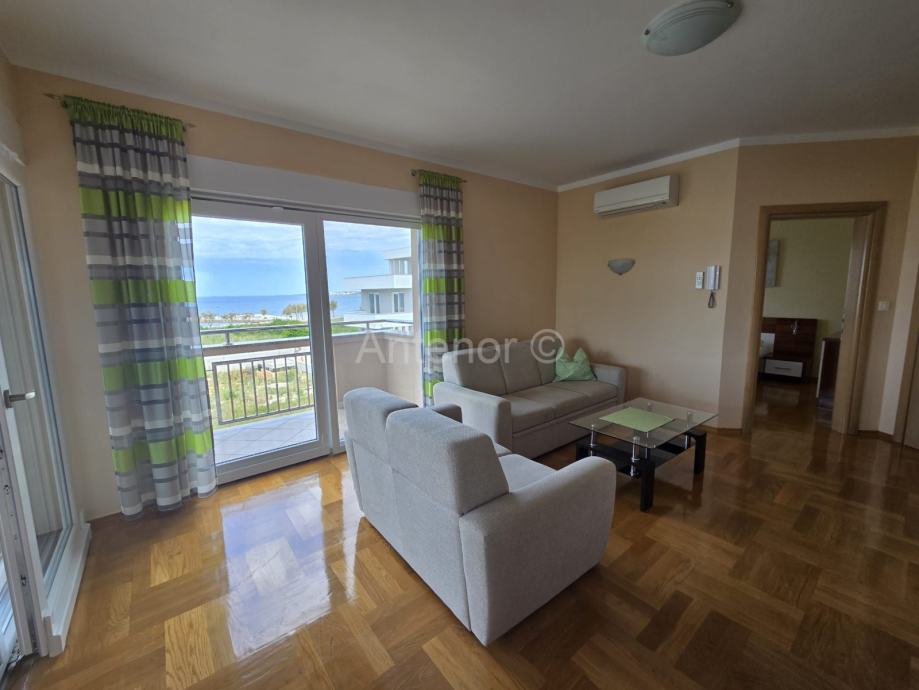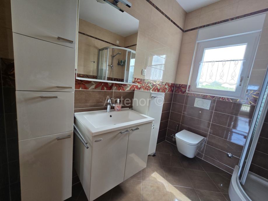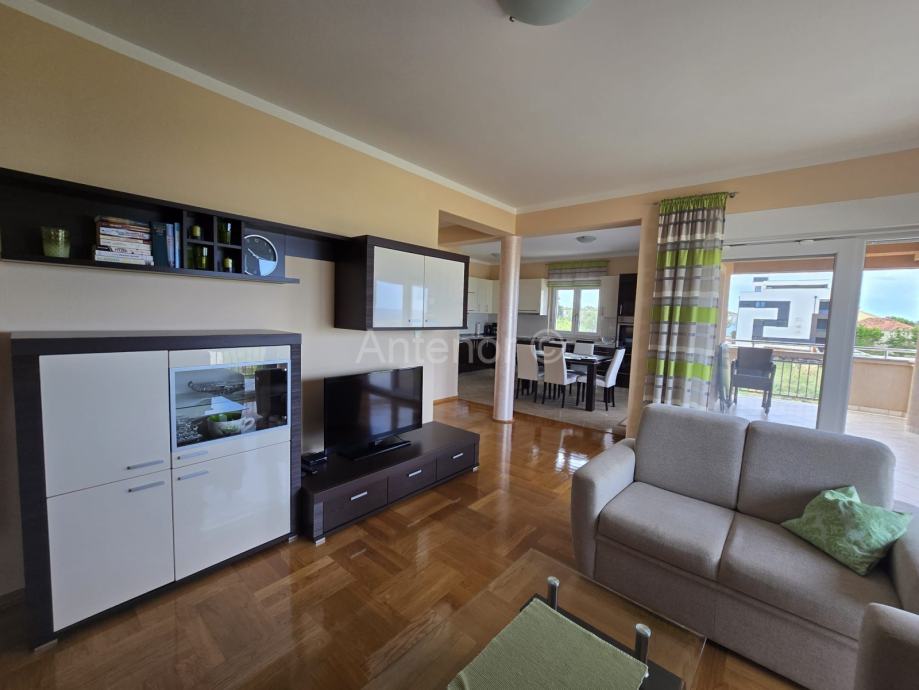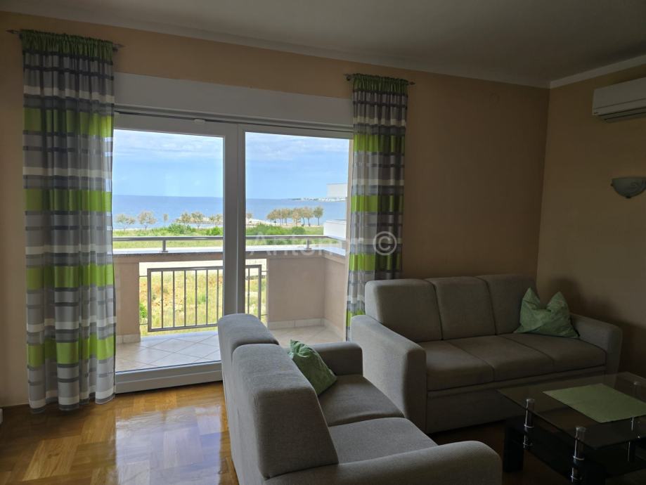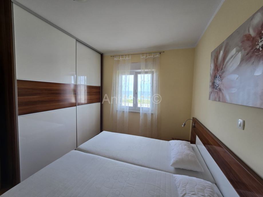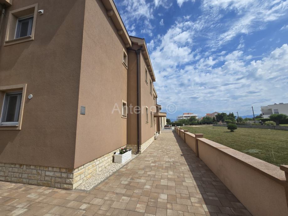 NIN-ZATON - prodaje se apartaman na 1. katu manje stambene zgrade. Apartman se sastoji od spremišta, kupaonice, dvije spavaće sobe, kuhinje, blagavaonice, dnevnog boravka, nenatkrivene i natkrivene terase ukupne korisne površine 92,10 m2. Apartmanu pripada 1 parkirno mjesto. Udaljenost od mora i plaže je 200 m. Vlasništvo uredno bez tereta.