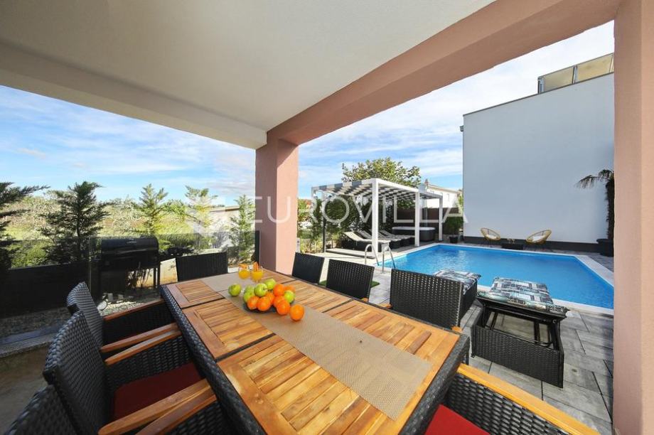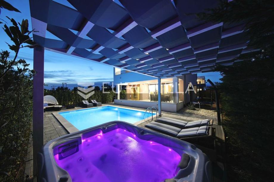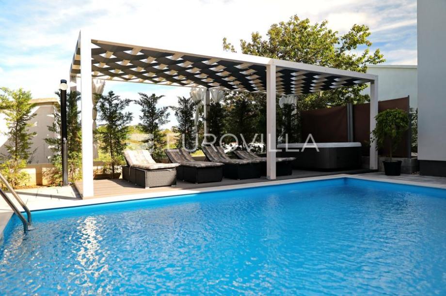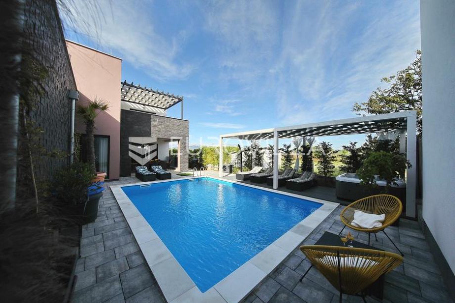 Zaton, Nin, in the center of town there is a complex with three beautiful, modern villas.Each villa has its own swimming pool of 35 m2 and a beautifully landscaped garden, and two villas have a jacuzzi and a sauna.Villa 1It extends over two floors, the area is 188.66 m2.The first floor consists of...