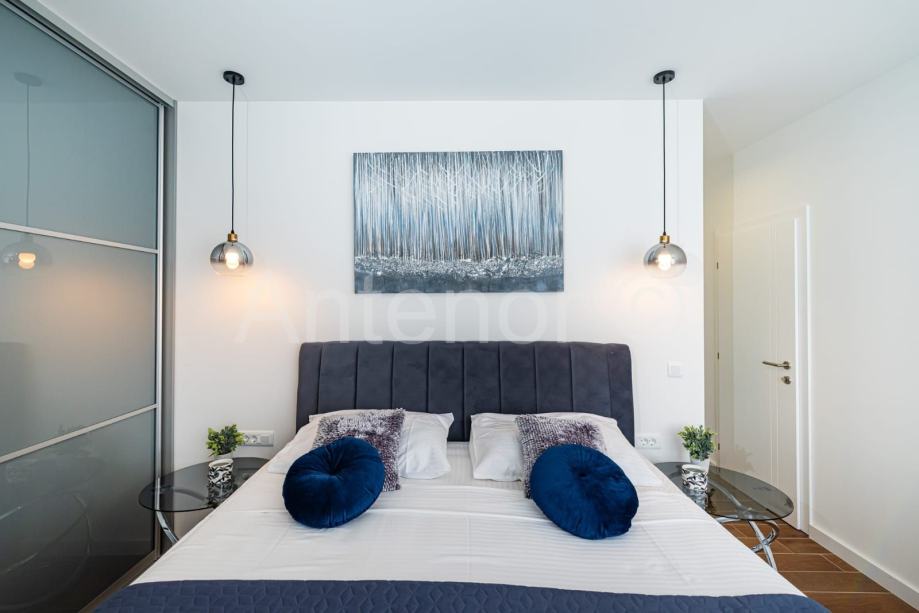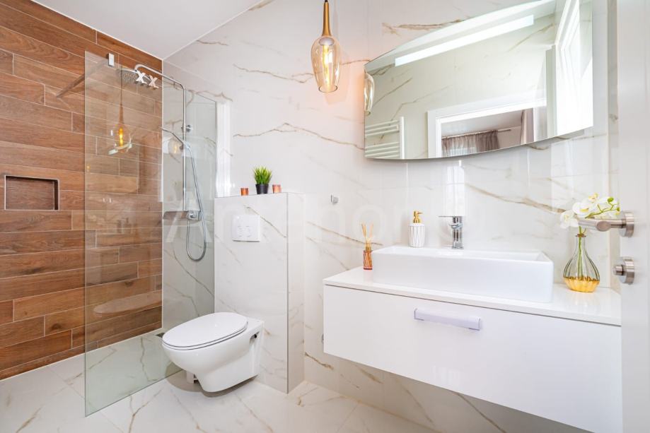 Stan 1 se sastoji od prizemlja i kata. U prizemlju se nalazi ulazni prostor, dnevni boravak, kuhinja, blagavaonica, ostava, wc i spremište. Na katu se nalazi hodnik, dvije spavaće sobe sa vlastitim garderobama i kupaonicama.
