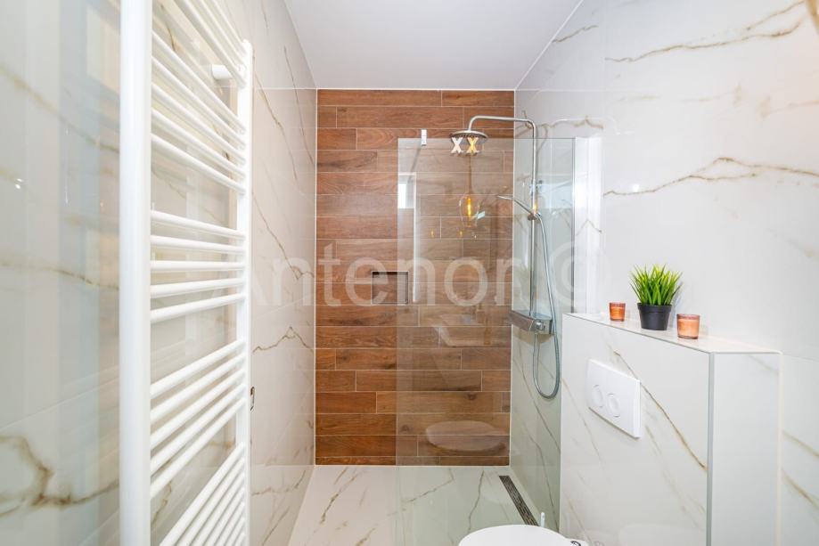 Prodaje se kuća koja je sagrađena na zemljištu od 375 m2, udaljena od centra 500 m i od mora 1 km.