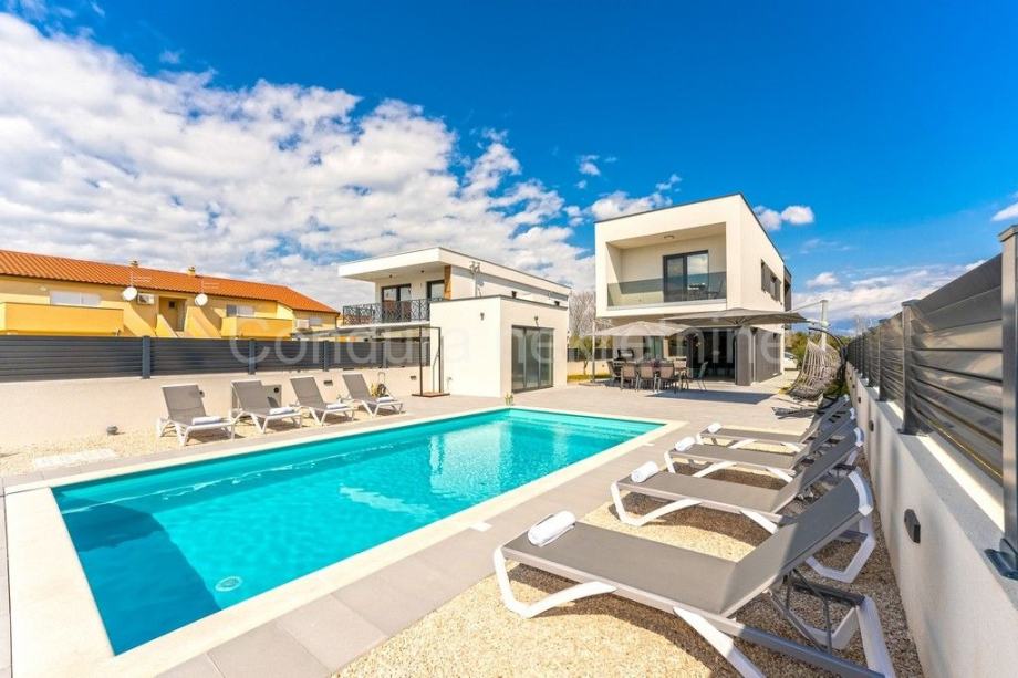 Prodaje se prekrasna nova vila za odmor s bazenom na odličnoj lokaciji u mirnom dijelu naselja okružena urbanim vilama.
