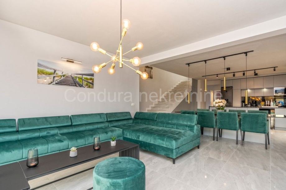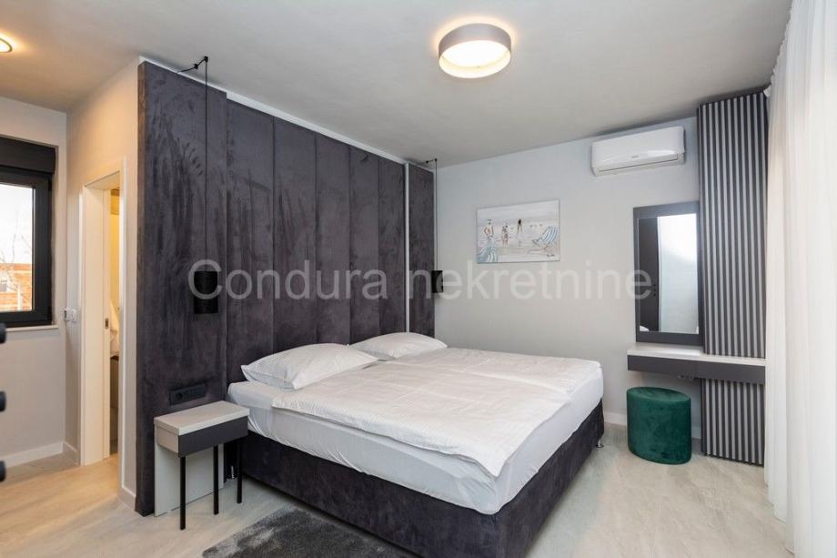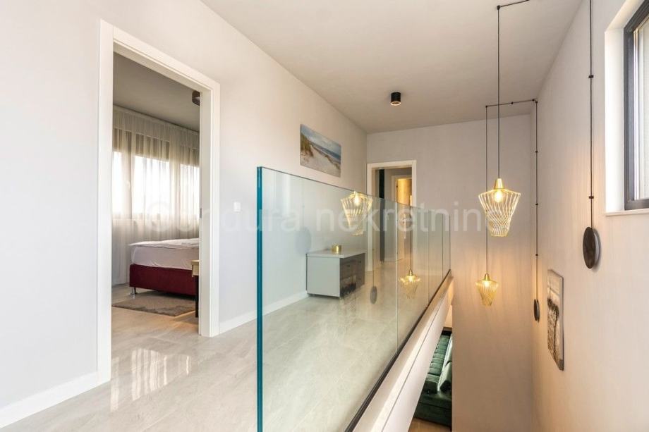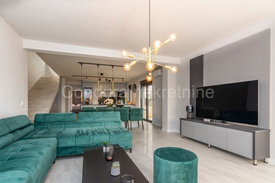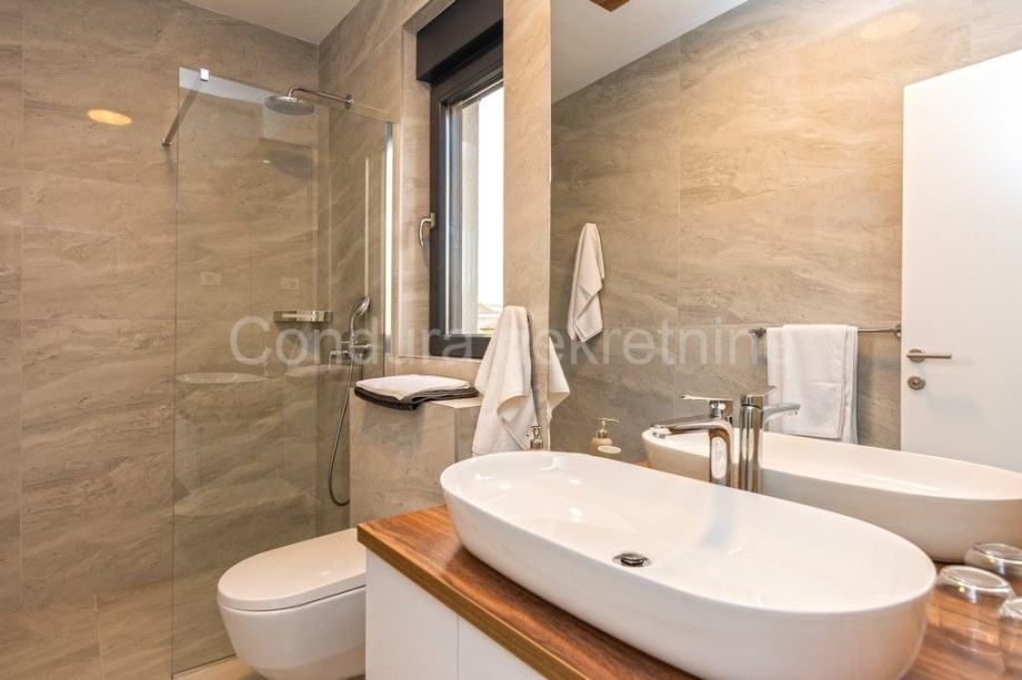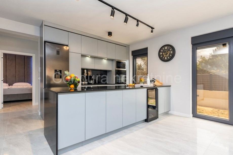 Kuća je u potpunosti namještena prvoklasnim namještajem izrađenim po mjeri. Pri uređenju koristile su se kvalitetne podne obloge - keramičke pločice, postavljena je PVC stolarija s električnim podizačima roletni. Klima uređaj za grijanje i hlađenje u dnevnom dijelu i u svakoj spavaćoj sobi, a u kupaonicama je postavljeno podno grijanje.