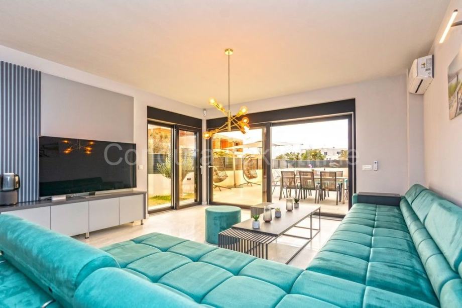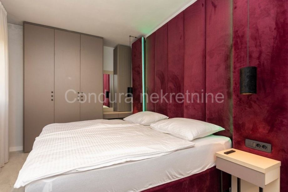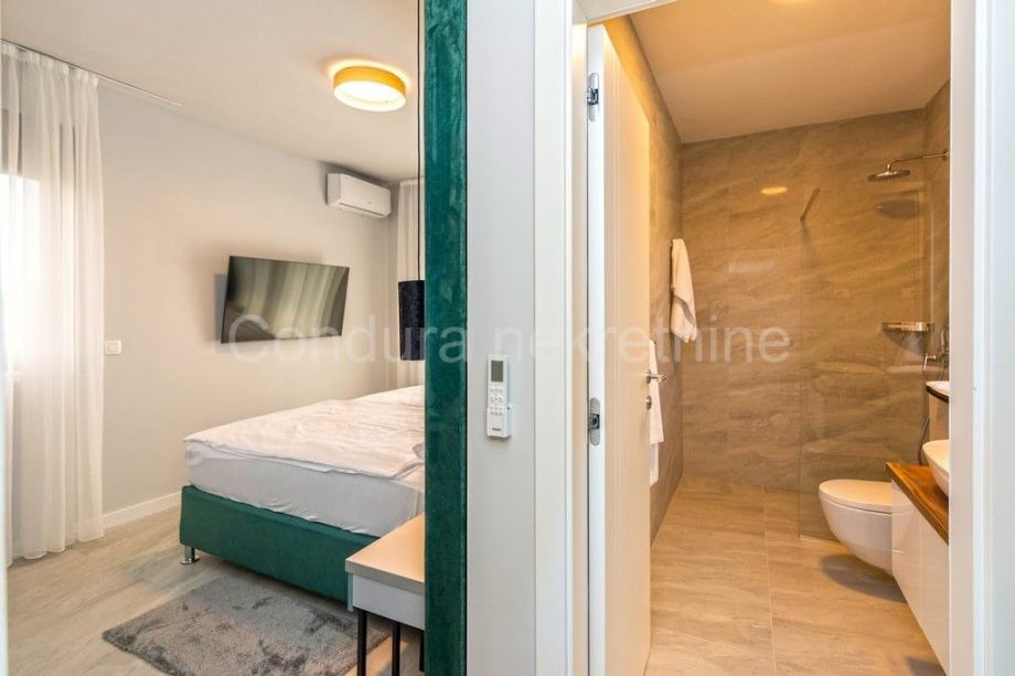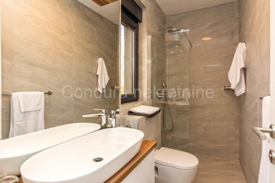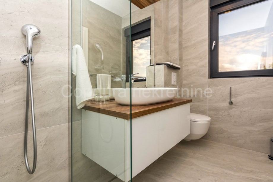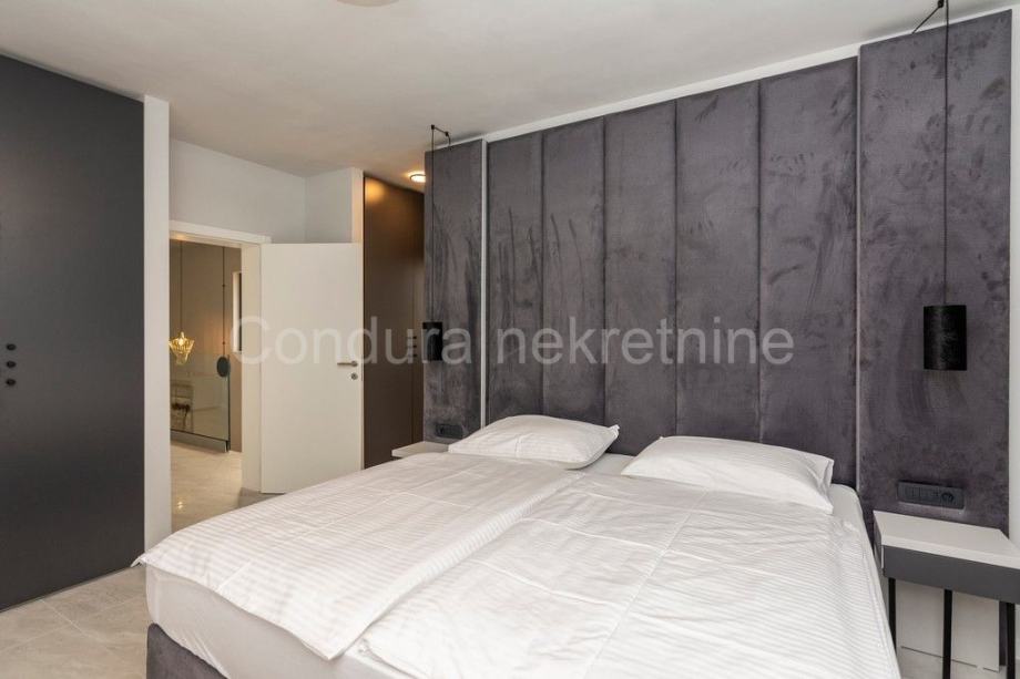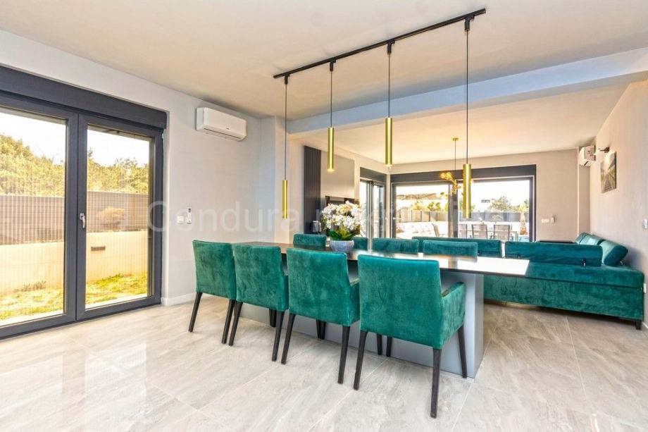Kuća je u potpunosti namještena prvoklasnim namještajem izrađenim po mjeri. Pri uređenju koristile su se kvalitetne podne obloge - keramičke pločice, postavljena je PVC stolarija s električnim podizačima roletni. Klima uređaj za grijanje i hlađenje u dnevnom dijelu i u svakoj spavaćoj sobi, a u kupaonicama je postavljeno podno grijanje.
