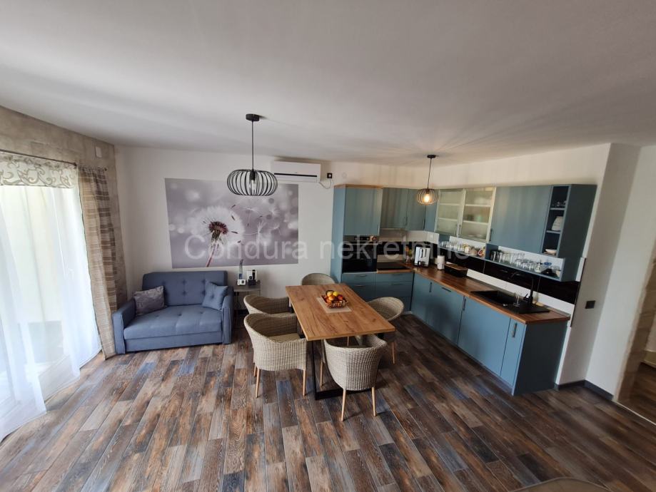 Apartman je 2023. godine u potpunosti renoviran:- postavljene su nove instalacije struje i vode- postavljena je nova keramika na podove u cijelom stanu- PVC stolarija s komarnicima- klima uređaj za grijanje i hlađenje u kuhinji