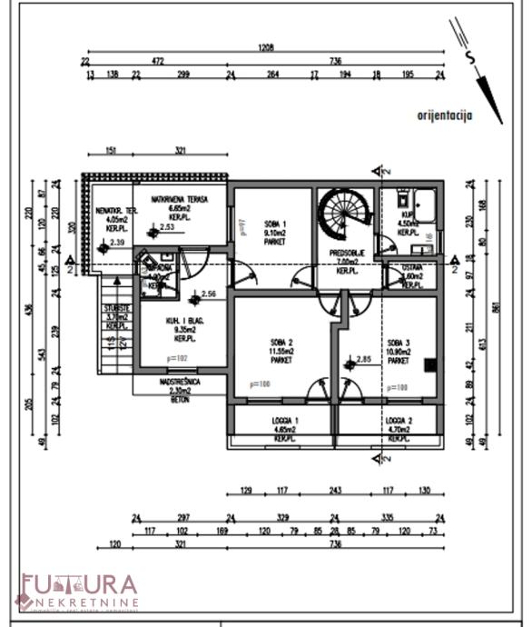 Kat: dvije spavaće sobe, predsoblje, kupaonica, ostava i dvije lođe.