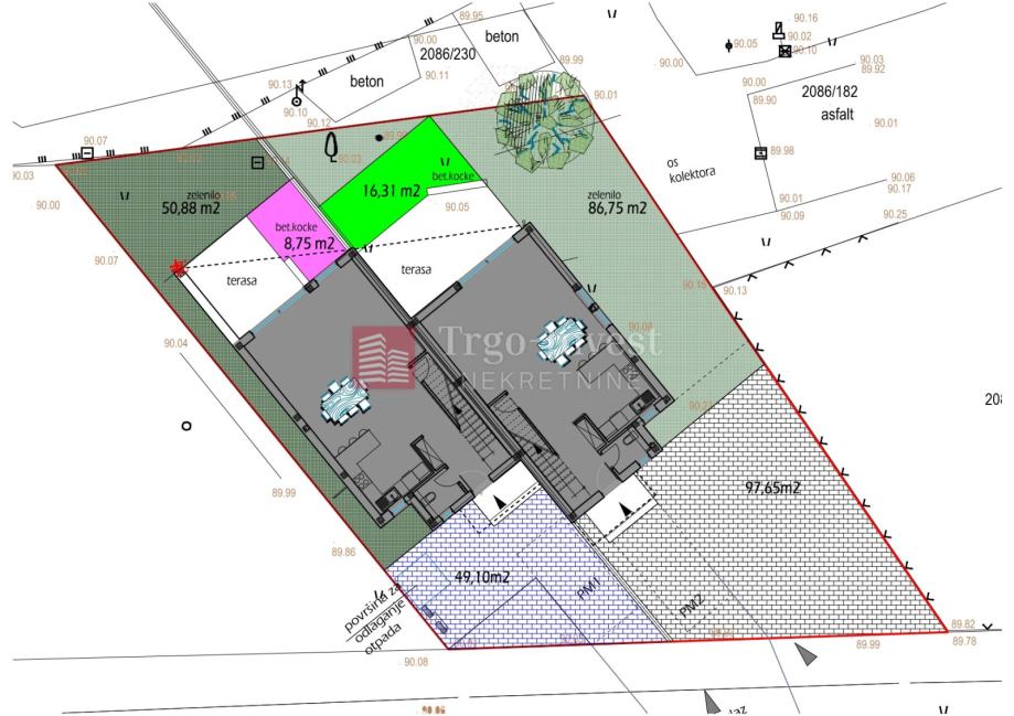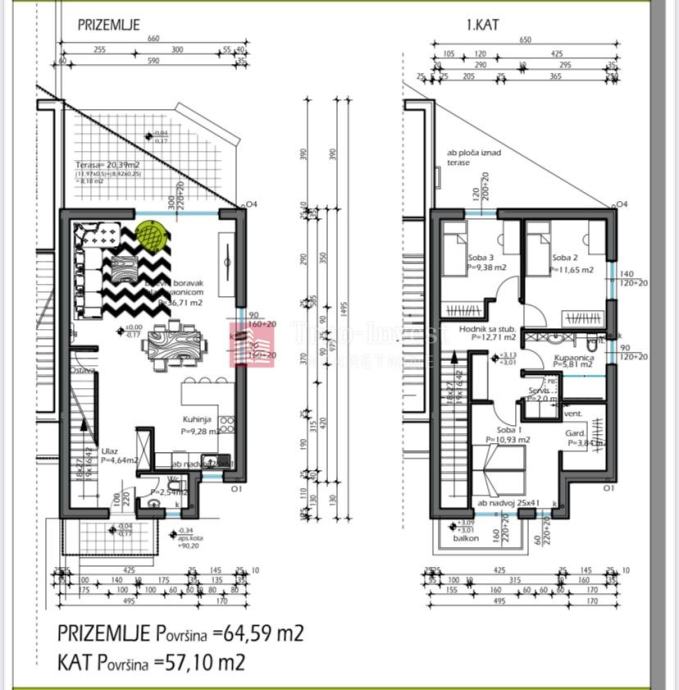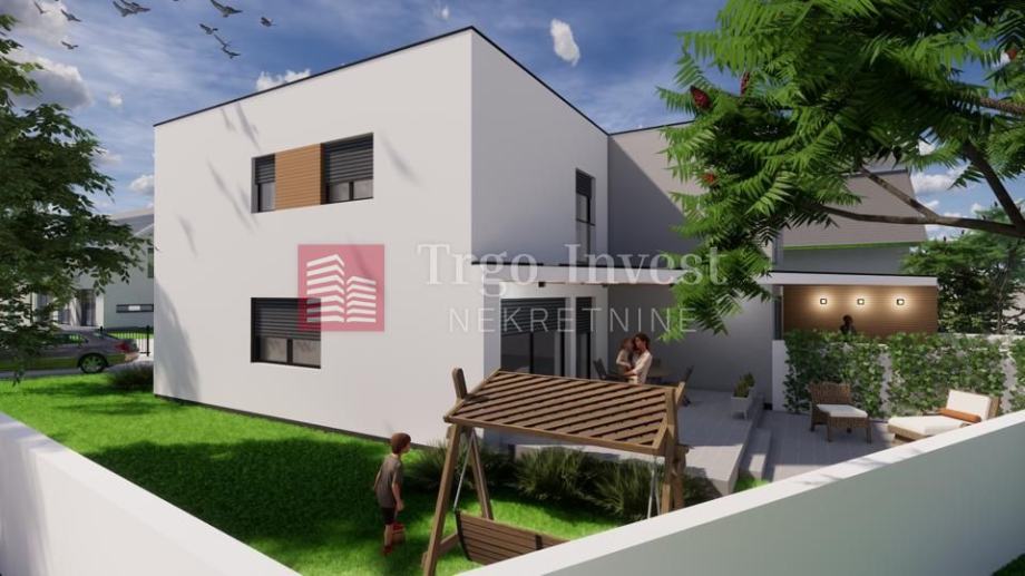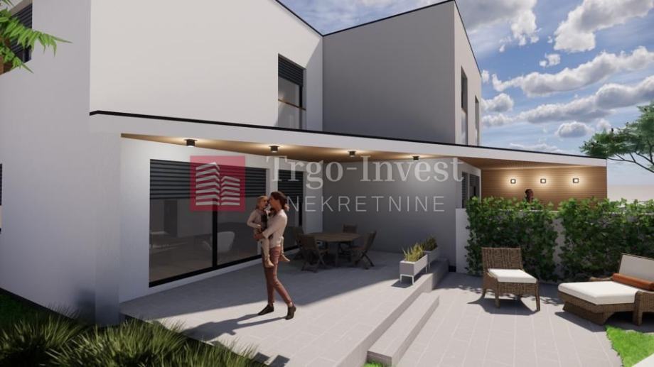 Stanovi su ukupne površine 122 m2, prizemlje se sastoji od dnevnog boravka, kuhinje, blagovaonice otvorenog tipa, terase, WC-a i ostave ukupne površine 64 m2, a kat se sastoji od tri spavaće sobe, kupaonice, garderobe i balkona ukupne površine 59 m2. Uz stanove će se etažirati i parkirno mjesto te pripadajući dio dvorišta na parceli.