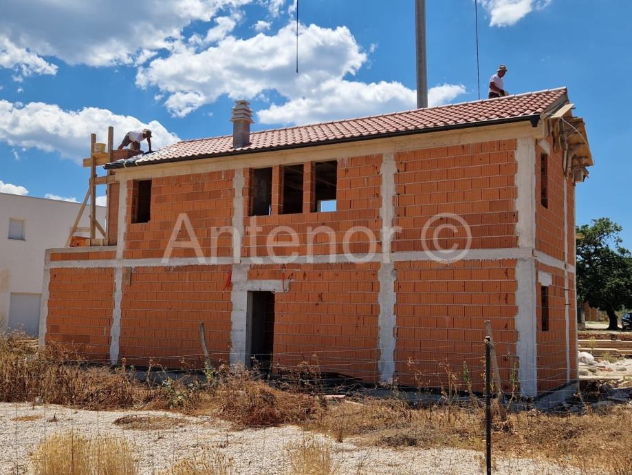 NINSKI STANOVI - kuća sa bazenom - kuća se sastoji od prizemlja i kata. U prizemlju se nalazi kuhinja, dnevni boravak, blagavaona, kupaonica. Na katu se nalaze 3 spavaće sobe, dvije kupaonice i terasa. Vlasništvo uredno. Udaljenost od centra mjesta Ninski stanovi je 800 m. Vlasništvo uredno.