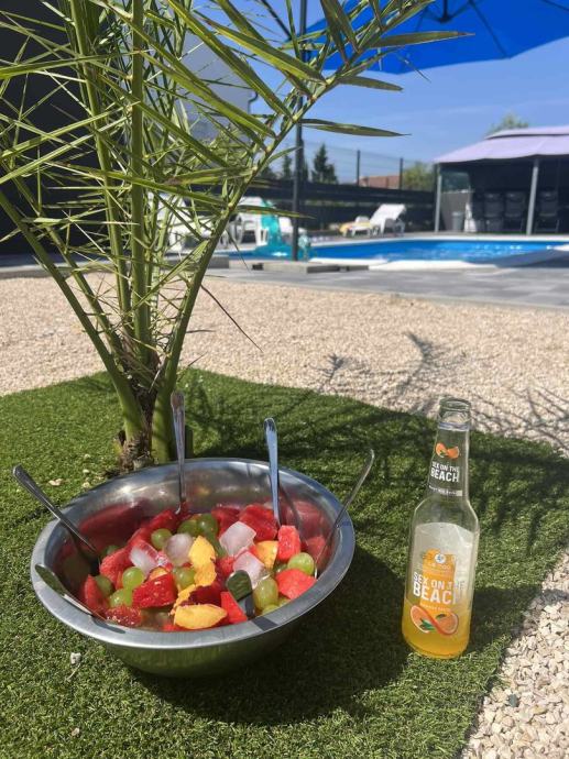 U dvorištu se nalazi bazen dimenzija 7x3.5 metara sa sunčalištem. Nadalje, u dvorištu se nalazi roštilj s natkrivenim mjestom za druženje te se uz bazen nalazi kupaonica. Također, u dvorištu ima mjesta za parking 3 - 4 automobila.