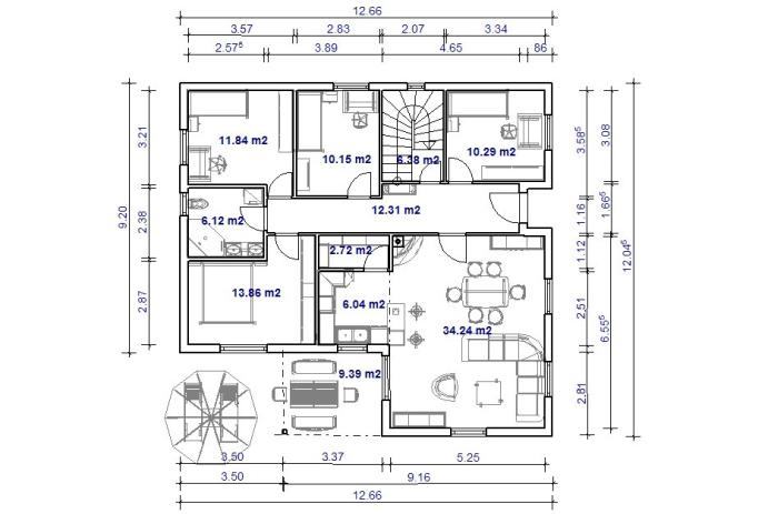 Niskoenergetska montažna kuća: 114 m2 + 10 m2 terasa + 3 m2 ulaz